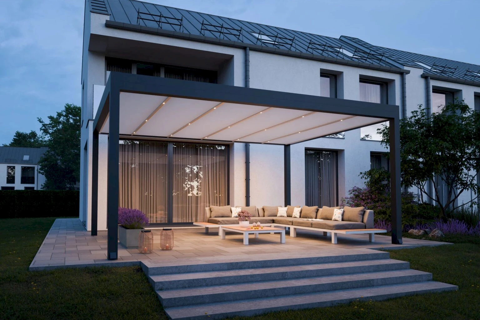 - Stála strecha nielen chráni terasu, ale poskytuje aj skvelú príležitosť na inštaláciu fotovoltaických panelov na strechu a využitie vyrobenej elektriny na napájanie domácich spotrebičov .